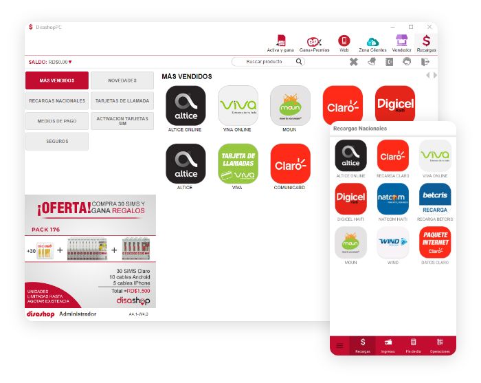 Trabajamos con Disashop, la compañía de recargas más grande de la República Dominicana.
